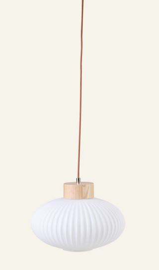 Eksklusiivinen kattovalaisin tammesta, jossa on kermanvalkoinen lasivarjostin. Uusi sarjamme puuvalaisimia yhdistää luonnollisen puun ja ajattoman muotoilun, ja se tuo lämpimän valon ja kodikkaan tunnelman mihin tahansa huoneeseen. Lamppu on tarkoitettu vain sisäkäyttöön (IP20). Tuotteen maksimiteho on 60W/12W LED, ja suosittelemme lamppua, jonka teho on 5-12W LED (kanta: E27). Lamppu ei sisälly tuotteeseen. Lamppu on himmennettävä. Mukana on 1,5 m pitkä ruskea tekstiilijohto ja 12 cm halkaisijaltaan oleva kattokuppi tammesta. Tuote toimitetaan valmiiksi koottuna.