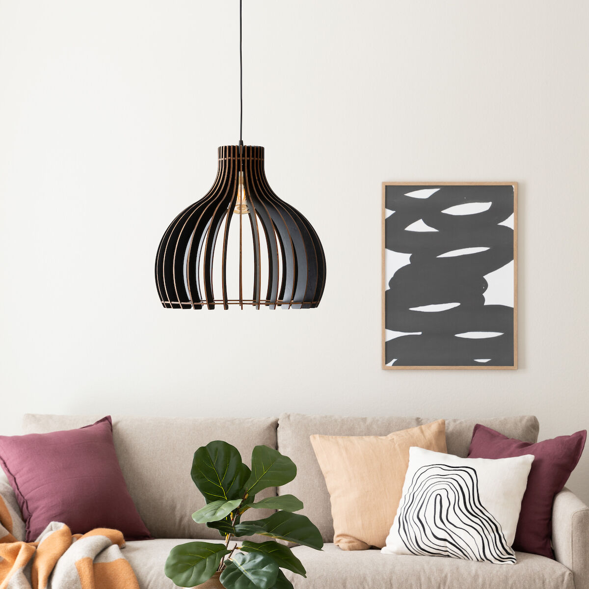 Kaarre riippuvalaisin on todella kaunis ja ajaton valaisin, joka on helppo yhdistää monenlaiseen sisustukseen. Se sopii kaikkiin kodin kuiviin tiloihin. Valaisimen varjostimesta tulee kaunis varjo puisen säleikön välistä. Puu materiaalina tuo lämpöä ja pehmeyttä sisustukseen. Lamppu näkyy säleikön välistä, joten lampun valinnalla ja valon sävyllä voit vaikuttaa valaisimen ulkonäköön. Johdon pituus 2 m, korkeus säädettävissä. Johdon väri luonnonvärisessä valaisimessa miljöökuvista poiketen on valkoinen. Valaisimessa on tavanomainen skandinaavinen kattokuppi, eli se sopii mainiosti kattokoukkukiinnitykseen valaisinpistotulpan kanssa. Pakkaukseen ei sisälly valaisinpistotulppaa, joten osta lisäksi sopiva johdollinen valaisinpistotulppa, mikäli asennat valaisimen valaisinpistorasiaan, jossa on paikka valaisinpistotulpalle. ...