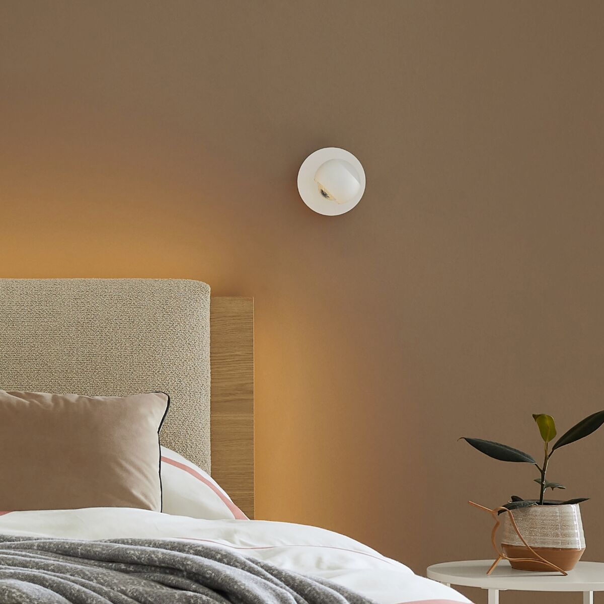 Musterring Cannon on moderni ja monipuolinen LED-seinävalaisin, joka tuo kotiin kauniisti suuntautuvaa valoa. Metallirunko ja pyöreä varjostin luovat pelkistetyn ilmeen, joka istuu erityisen hyvin skandinaaviseen sisustukseen. Valo suuntautuu sekä ylös että alas: alaosan spottivalo tuo tarkkuutta ja yläosan häikäisysuojattu valo pehmeyttä. Valaisimen suuntaa voi säätää tarpeen mukaan, mikä tekee siitä erinomaisen esimerkiksi lukuvaloksi tai tunnelmavalaisimeksi olohuoneeseen tai makuuhuoneeseen. Cannonissa on portaaton himmennys sekä värilämpötilan säätö välillä 2700–6500K, joten voit säätää valon lämpimän pehmeäksi tai viileän kirkkaaksi tilanteen mukaan. Valaisinta ohjataan mukana tulevalla kaukosäätimellä, ja integroitu muistitoiminto palauttaa viimeksi käytetyt asetukset, kun valaisin sytyte...