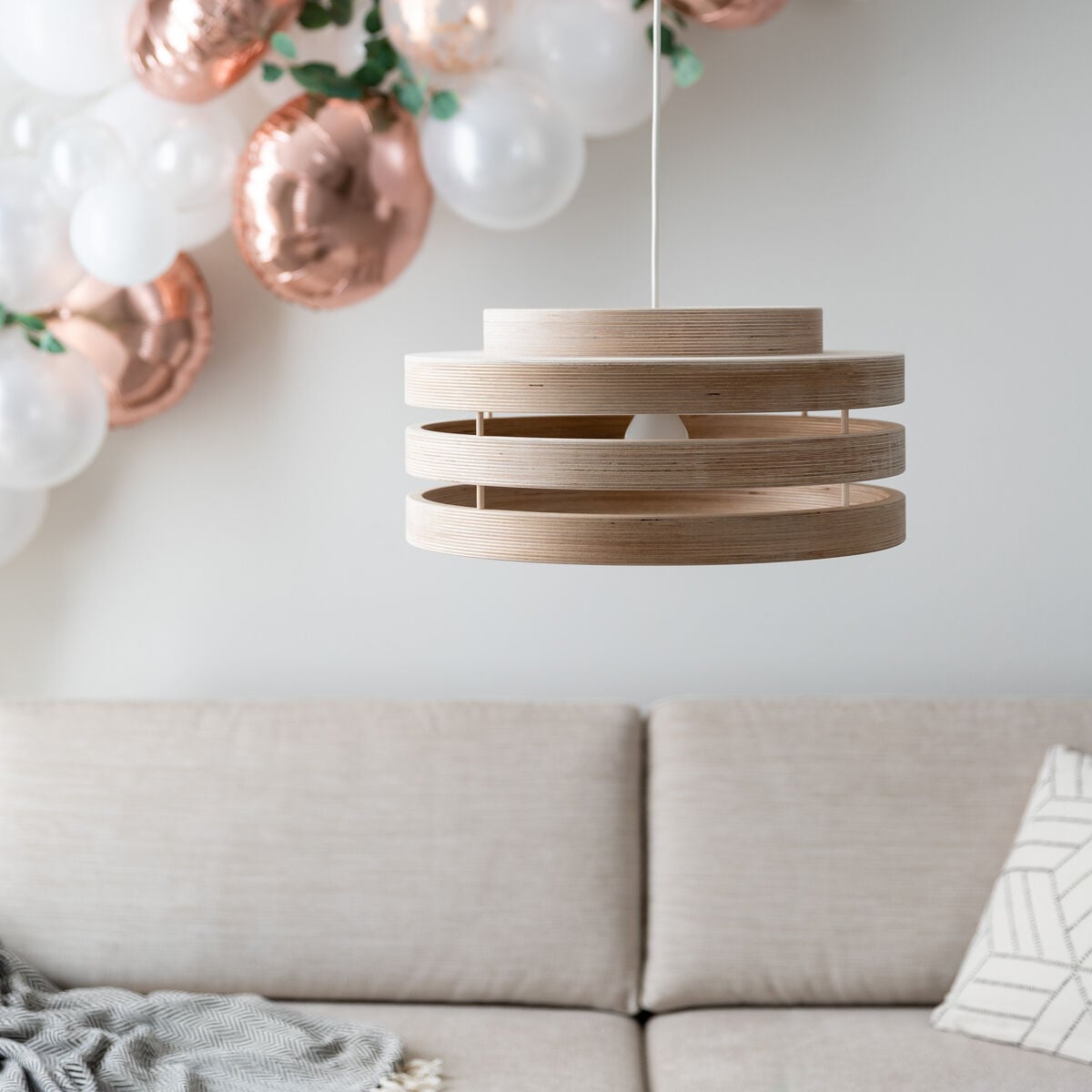 Kaunis Harmonia riippuvalaisin tuo kotiisi ajattoman skandinaavisen tyylin, joka kestää aikaa. Lampunvarjostin on valmistettu kotimaisena käsityönä käsittelemättömästä koivuvanerista, joka antaa sille luonnollisen ja lämpimän ilmeen. Harmoniaa on saatavilla useassa eri koossa, joten se sopii monenlaisiin tiloihin ja tunnelmiin. Voit luoda upean ryhmän useammasta valaisimesta tai käyttää yksittäin korostamaan kauniisti kodin eri osia. Valaisimessa on 2 metrin mittainen valkoinen johto, jossa on muovinen kattokuppi, koukkukiinnitys ja valaisinpistotulppa. Valaisin on helppo asentaa suoraan valaisinpistorasiaan. Valaisimeen sopii E27-kantainen lamppu. Puhdistus sujuu helposti pelkällä pölyhuiskalla tai pölynimurilla, ilman kemikaaleja. Koivuvaneripinta vanhenee kauniisti ja luonnollisesti. Harmoniasta on saatavilla myös varjostin, jonka kanssa voit yhdistää halu...