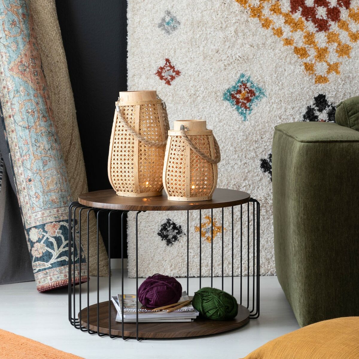 Kaunis ja lämminhenkinen Rattan lyhty luo tunnelmaa kodin sisustamiseen. Lyhdyn sisällä lasikippo kynttilää varten. Sopii kynttilöille, LED-kynttilöille ja kausivaloille. Lyhdyn koot: pieni 19x19x25 cm iso 22x22x34 cm