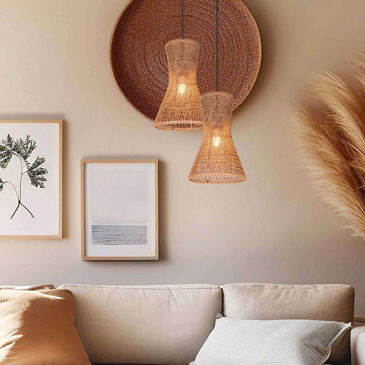 Maanläheinen Bijou-riippuvalaisin luo kodikasta tunnelmaa. Valaisimen kaunis varjostin on punottu ruskeasta paperinarusta, josta valo säteilee pehmeästi läpi. Valaisimen skandinaavinen muotoilu ja boheemi materiaali luovat kiinnostavan yhdistelmän, johon kontrastia luovat musta ripustusjohto ja kattokupu. Bijou sopii hyvin joko yksittäin, parina tai useamman valaisimen ryhmänä esimerkiksi olohuoneeseen, keittiöön tai vaikka makuuhuoneeseen yöpöydän ylle. Valaisimen ripustuskorkeus on säädettävissä, maksimikorkeus 150 cm. Kuvun halkaisija on 20 cm. Valonlähde 1xE27, polttimo ei sisälly mukaan.