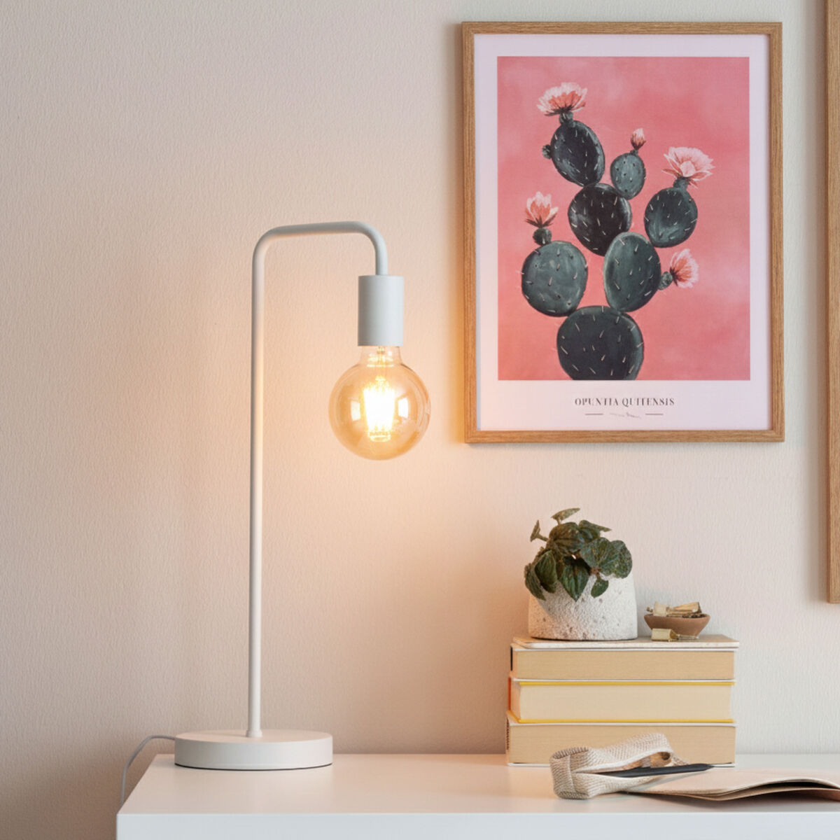 Trio Diallo on siro, minimalistinen skandinaavinen pöytävalaisin, jonka lankamaisen ohut varsi korostaa paljaaksi jäävää lamppua. Siksi kannattaakin valita koristeellinen LED-lamppu, jota vaihtamalla valaisimen ilme muuttuu. Valaisimen korkeus 51 cm. On/off -kytkin 180 cm pitkässä virtajohdossa.