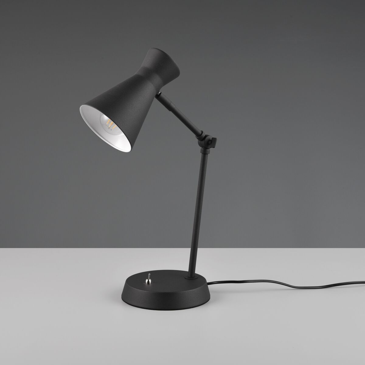 Skandinaavinen Trio Enzo pöytävalaisin tuo kotiisi tyylikästä pelkistettyä designia. Valaisimen mattamaalattu metallirunko ja kupu luovat linjakkaan ja ajattoman ilmeen. Suunnattava kupu tekee tästä valaisimesta täydellisen lukuvalon sohvan tai nojatuolin viereen. Valaisimessa on 1xE27-valonlähde (polttimo ei sisälly). On/Off-katkaisija sijaitsee kätevästi lampun jalkaosassa. Luo kotiisi kutsuva tunnelma ja nauti lukuhetkistä Trio Enzo pöytävalaisimen valossa!