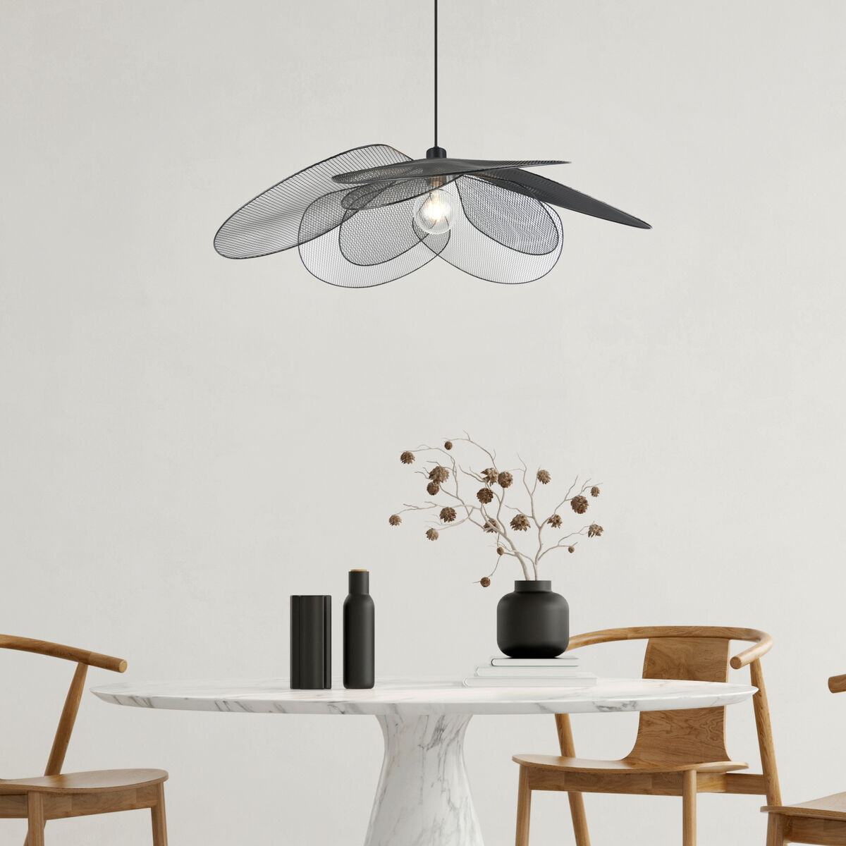Trio Fleure -riippuvalaisin on näyttävä katseenvangitsija, jonka muotoilu tuo mieleen herkät kukkien terälehdet. Alaspäin kaartuvat ja lomittain asettuvat metalliosat muodostavat valaisimen varjostimen, joka kehystää valonlähteen kauniisti ja tuo kokonaisuuteen ulottuvuutta. Mattamusta metalli tekee valaisimen ilmeestä samanaikaisesti trendikkään ja klassisen – se istuu yhtä hyvin moderniin sisustukseen kuin ajattomaan tyyliin. Kookas halkaisija (87 cm) tekee Fleuresta upean keskipisteen esimerkiksi ruokailutilaan, olohuoneeseen tai makuuhuoneeseen. Ripustuskorkeus on säädettävissä, enimmäiskorkeus 150 cm.