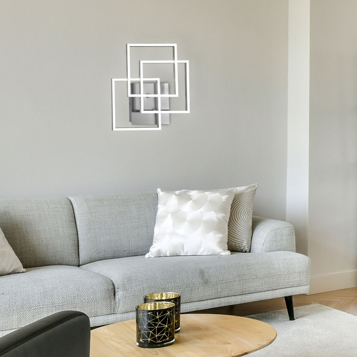 Trio Mobile -LED-kattovalaisin on graafinen ja moderni vaihtoehto, joka tuo tilaan näyttävää ilmettä. Valaisin koostuu kolmesta samankokoisesta neliönmuotoisesta valokehikosta, joita voi kääntää vaakatasossa eri suuntiin – näin valaisin muuntuu aina tilan ja tarpeen mukaan. Valon määrää ja värisävyä voidaan säätää portaattomasti mukana tulevalla kaukosäätimellä. Värilämpötila on säädettävissä 2700–6000K välillä, joten voit luoda joko lämmintä ja tunnelmallista tai kirkasta ja energisoivaa valaistusta. Valaisimessa on myös kätevä yövalotoiminto. Runko on valmistettu metallista, mikä antaa kokonaisuudelle ryhdikkään ja laadukkaan ilmeen. Mobile sopii erinomaisesti esimerkiksi olohuoneen, ruokailutilan tai työhuoneen valaisimeksi.