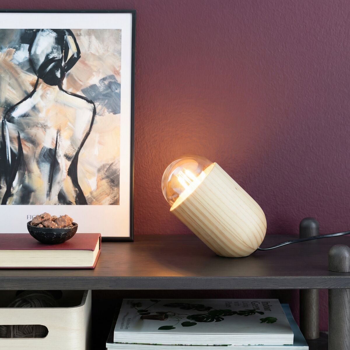 Trio Nara -pöytävalaisin on ajaton sisustuksen yksityiskohta, joka yhdistää pelkistetyn designin ja modernin eleganssin. Sen kauniisti kaartuva, kallellaan oleva muotoilu tekee valaisimesta katseenvangitsijan, joka toimii yhtä hyvin valonlähteenä kuin sisustuselementtinä. Nara näyttää upealta esimerkiksi olohuoneen hyllyssä, lipaston päällä tai makuuhuoneen yöpöydällä. Valaisimen runko on mallista riippuen vaaleaa luonnonpuuta tai mattamustaa metallia, mikä antaa mahdollisuuden sovittaa se osaksi erilaista sisustustyyliä – puinen versio tuo lämpöä ja skandinaavista kodikkuutta, kun taas musta versio korostaa modernia ryhtiä. Koska polttimo on näkyvä osa kokonaisuutta, valonlähteeksi suositellaan pallonmuotoista polttimoa. Mustassa liitosjohdossa on kätevä on/off-käsipainike.