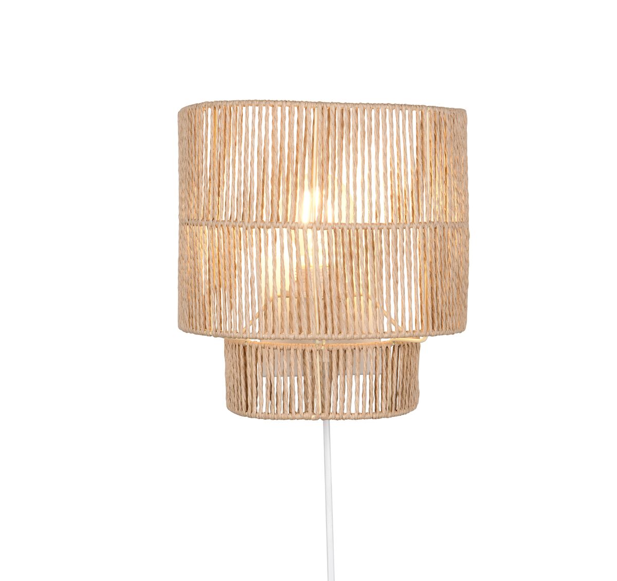 Boheemilla tyylillään ihastuttava Satna-seinävalaisin on tunnelmallinen valaisija niin makuuhuoneessa, eteiskäytävässä kuin olohuoneessakin ja se on itsessään kaunis sisustuselementti. Valaisimessa on tyylikäs ja keveä, ruskean sävyinen paperinarusta punottu varjostin, joka suodattaa valoa tasaisesti läpi raoistaan ja jättää valonlähteen näkyviin. Satna-valaisimen maanläheisen ilmeen kruunaa harmonisesti yhteensopivat mattavalkoinen metallirunko ja luonnollisen sävyinen kupu. Flex-Connect-ominaisuuden ansiosta voit sähköistää valaisimen joko pistotulpallisella liitosjohdolla tai kiinteästi kytkemällä sokeripalaliittimellä. Valaisimen mukana toimitetaan liitosjohto. Virta kytketään valaisimen liitosjohdossa olevasta on/off-kytkimestä. Valonlähde 1xE27, polttimo ei sisälly mukaan.